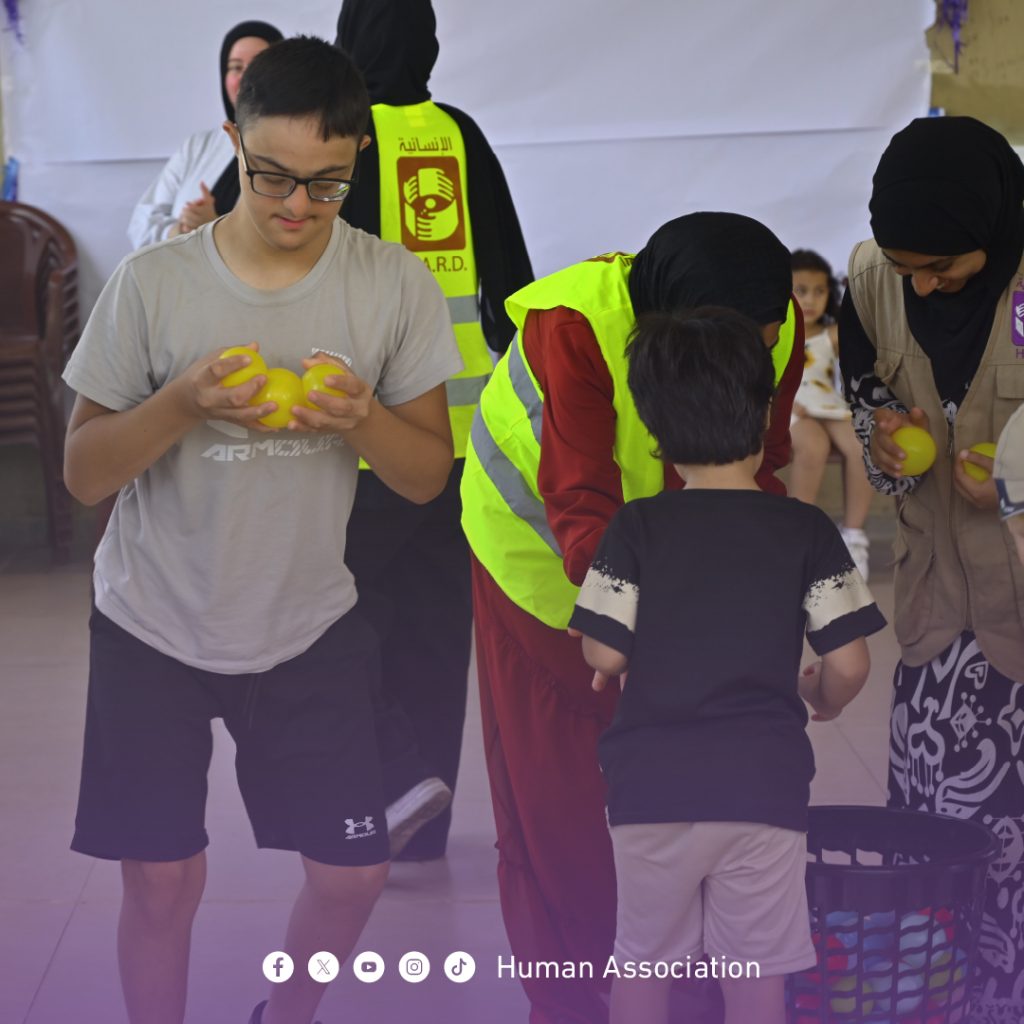 ضمن جهودها لإسعاد الأطفال وتحت شعار “لقاء بلا حواجز”، نظمت الجمعية الإنسانية يومًا ترفيهيًا متميزًا استهدف أطفال ذوي الاحتياجات الخاصة وأطفال الروضة، وذلك في مخيم البص.